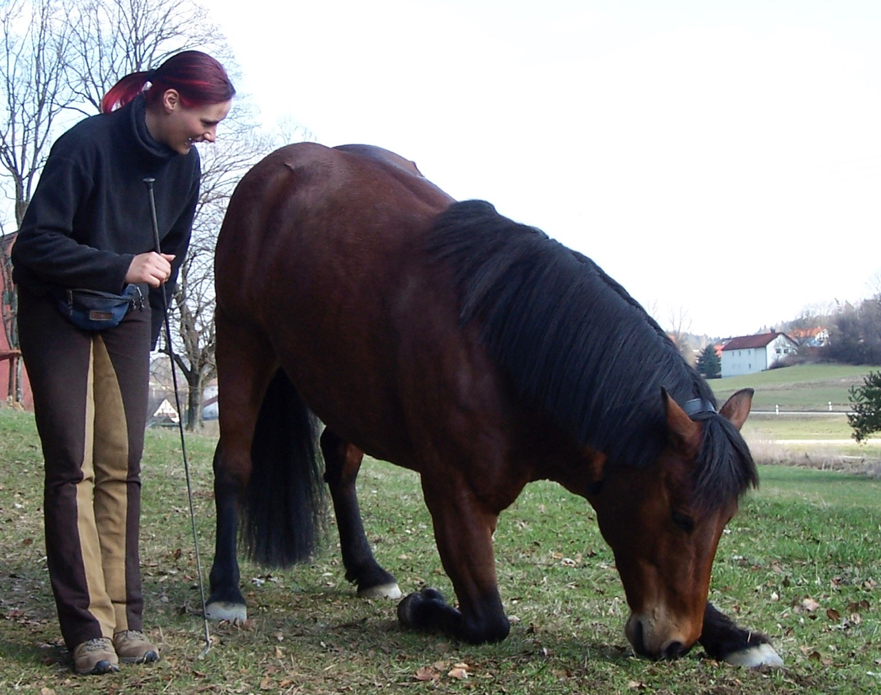 Balanceakt und Dehnübung - selbstverständlich immer unter Berücksichtigung der Psyche und des Wohlbefinden des Pferdes. (2005 - Lea 15-jährig)